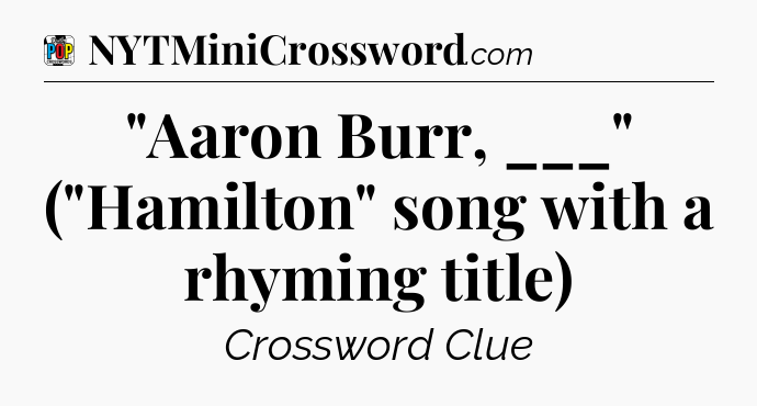 There is 1 possible answer for the crossword clue “”Aaron Burr, ___” (“Hamilton” song with a rhyming title)”.