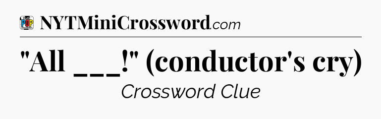 The clue “”All ___!” (conductor’s cry)” most recently appeared in a Daily Pop Plus Crossword on November 22, 2024.