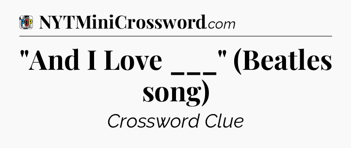 If you landed on this webpage, you definitely need some help with Daily Pop Crossword. This simple page contains the solution for ‘”And I Love ___” (Beatles song)’ crossword clue. Scroll down and see the answer to this hint!