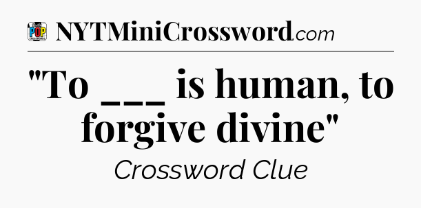 The clue “”To ___ is human, to forgive divine”” most recently appeared in a Daily Pop Plus Crossword on December 14, 2025.