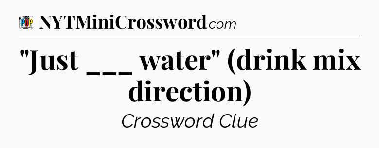 The clue “”Just ___ water” (drink mix direction)” most recently appeared in a Daily Pop Plus Crossword on December 16, 2025.