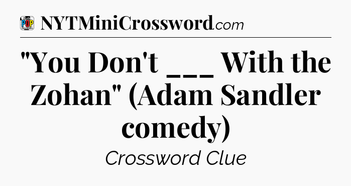 The clue “”You Don’t ___ With the Zohan” (Adam Sandler comedy)” most recently appeared in a Daily Pop Plus Crossword on December 25, 2024.