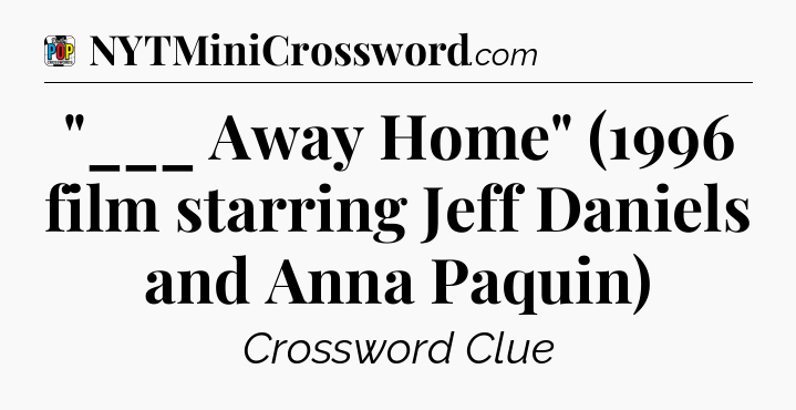 The clue “”___ Away Home” (1996 film starring Jeff Daniels and Anna Paquin)” most recently appeared in a Daily Pop Plus Crossword on December 29, 2023.