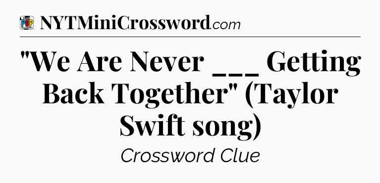 The clue “”We Are Never ___ Getting Back Together” (Taylor Swift song)” most recently appeared in a Daily Pop Plus Crossword on December 7, 2023.