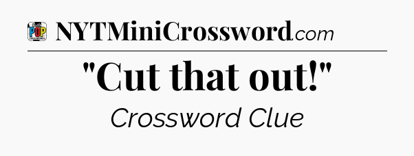 The clue “”Cut that out!”” most recently appeared in a Daily Pop Plus Crossword on February 11, 2026.