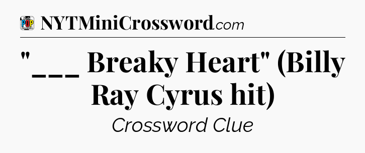 The clue “”___ Breaky Heart” (Billy Ray Cyrus hit)” most recently appeared in a Daily Pop Plus Crossword on February 14, 2026.