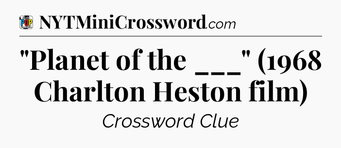 The clue “”Planet of the ___” (1968 Charlton Heston film)” most recently appeared in a Daily Pop Plus Crossword on February 15, 2025.