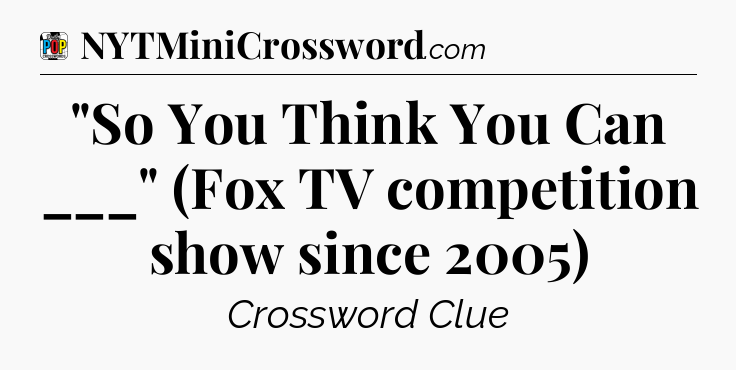 The clue “”So You Think You Can ___” (Fox TV competition show since 2005)” most recently appeared in a Daily Pop Plus Crossword on February 25, 2026.