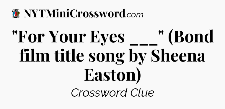The clue “”For Your Eyes ___” (Bond film title song by Sheena Easton)” most recently appeared in a Daily Pop Plus Crossword on March 11, 2025.