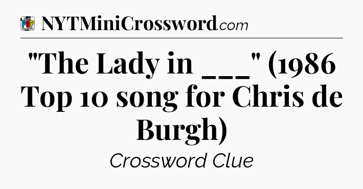 The clue “”The Lady in ___” (1986 Top 10 song for Chris de Burgh)” most recently appeared in a Daily Pop Plus Crossword on March 11, 2025.