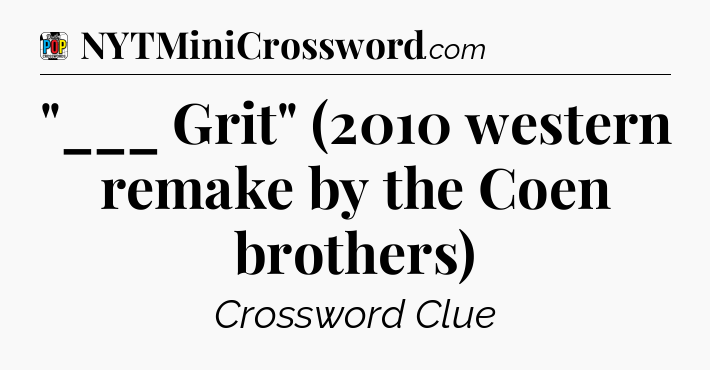 The clue “”___ Grit” (2010 western remake by the Coen brothers)” most recently appeared in a Daily Pop Plus Crossword on March 13, 2026.