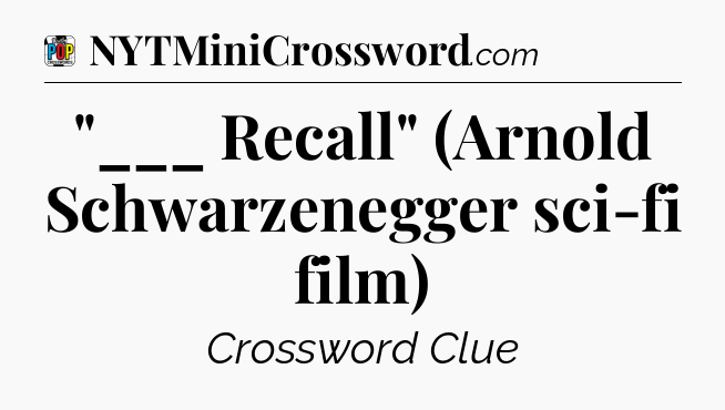The clue “”___ Recall” (Arnold Schwarzenegger sci-fi film)” most recently appeared in a Daily Pop Plus Crossword on March 14, 2026.