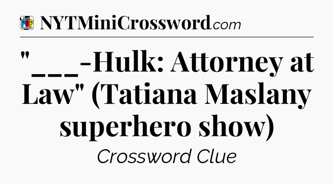 The clue “”___-Hulk: Attorney at Law” (Tatiana Maslany superhero show)” most recently appeared in a Daily Pop Plus Crossword on March 17, 2025.
