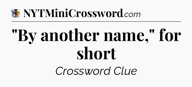 If you landed on this webpage, you definitely need some help with Daily Pop Crossword. This simple page contains the solution for ‘”By another name,” for short’ crossword clue. Scroll down and see the answer to this hint!