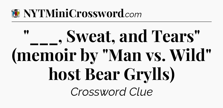 The clue “”___, Sweat, and Tears” (memoir by “Man vs. Wild” host Bear Grylls)” most recently appeared in a Daily Pop Plus Crossword on March 2, 2026.