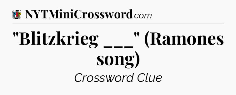 The clue “”Blitzkrieg ___” (Ramones song)” most recently appeared in a Daily Pop Plus Crossword on March 21, 2025.