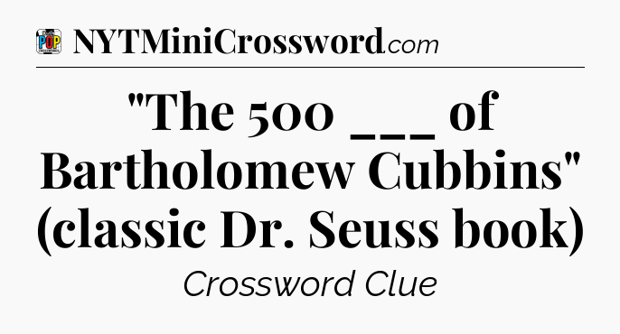 The clue “”The 500 ___ of Bartholomew Cubbins” (classic Dr. Seuss book)” most recently appeared in a Daily Pop Plus Crossword on March 22, 2025.