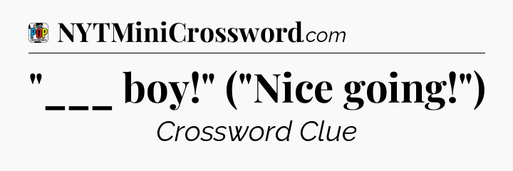 The clue “”___ boy!” (“Nice going!”)” most recently appeared in a Daily Pop Plus Crossword on March 23, 2024.