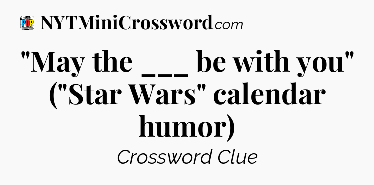 The clue “”May the ___ be with you” (“Star Wars” calendar humor)” most recently appeared in a Daily Pop Plus Crossword on March 24, 2024.