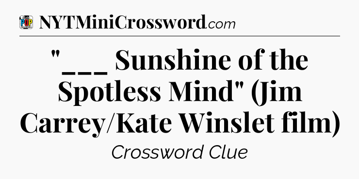 The clue “”___ Sunshine of the Spotless Mind” (Jim Carrey/Kate Winslet film)” most recently appeared in a Daily Pop Plus Crossword on March 27, 2025.