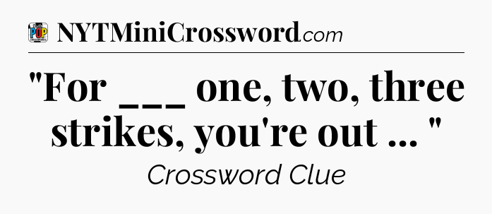 The clue “”For ___ one, two, three strikes, you’re out … “” most recently appeared in a Daily Pop Plus Crossword on March 3, 2024.