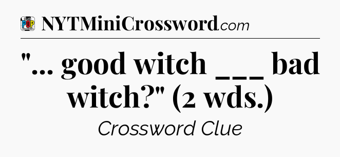 The clue “”… good witch ___ bad witch?” (2 wds.)” most recently appeared in a Daily Pop Plus Crossword on March 30, 2024.