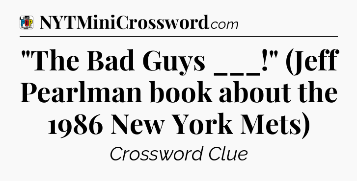 The clue “”The Bad Guys ___!” (Jeff Pearlman book about the 1986 New York Mets)” most recently appeared in a Daily Pop Plus Crossword on March 5, 2025.