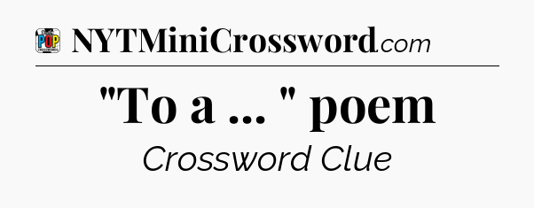 The clue “”To a … ” poem” most recently appeared in a Daily Pop Plus Crossword on March 6, 2025.