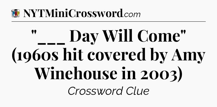 The clue “”___ Day Will Come” (1960s hit covered by Amy Winehouse in 2003)” most recently appeared in a Daily Pop Plus Crossword on March 7, 2025.