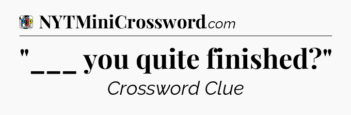 The clue “”___ you quite finished?”” most recently appeared in a Daily Pop Plus Crossword on March 9, 2025.