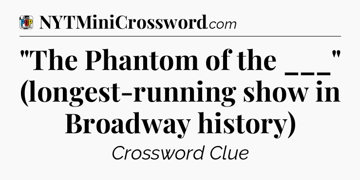 The clue “”The Phantom of the ___” (longest-running show in Broadway history)” most recently appeared in a Daily Pop Plus Crossword on March 9, 2025.