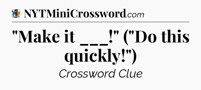 The clue “”Make it ___!” (“Do this quickly!”)” most recently appeared in a Daily Pop Plus Crossword on April 10, 2024.