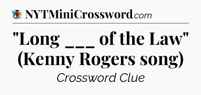 The clue “”Long ___ of the Law” (Kenny Rogers song)” most recently appeared in a Daily Pop Plus Crossword on April 12, 2025.