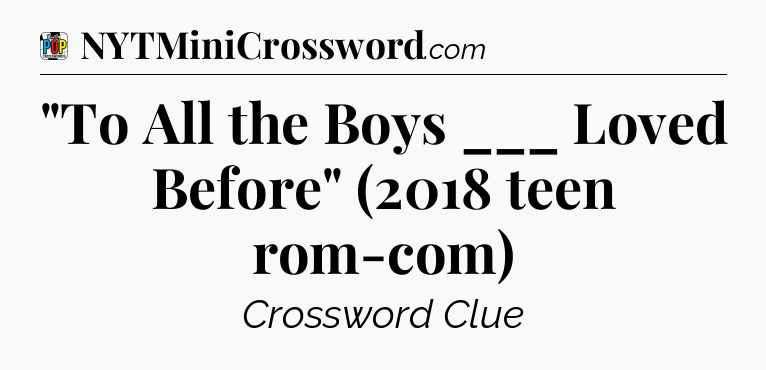 The clue “”To All the Boys ___ Loved Before” (2018 teen rom-com)” most recently appeared in a Daily Pop Plus Crossword on April 13, 2024.