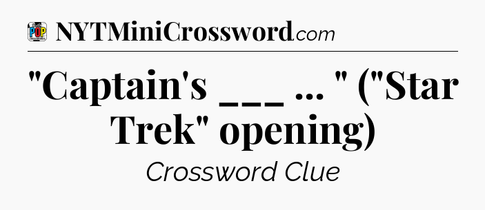 The clue “”Captain’s ___ … ” (“Star Trek” opening)” most recently appeared in a Daily Pop Plus Crossword on April 14, 2025.
