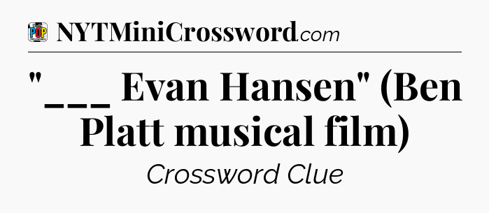 The clue “”___ Evan Hansen” (Ben Platt musical film)” most recently appeared in a Daily Pop Plus Crossword on April 15, 2024.