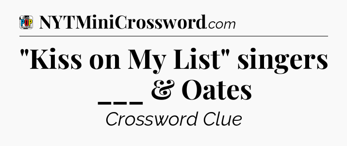 The clue “”Kiss on My List” singers ___ & Oates” most recently appeared in a Daily Pop Plus Crossword on April 15, 2025.
