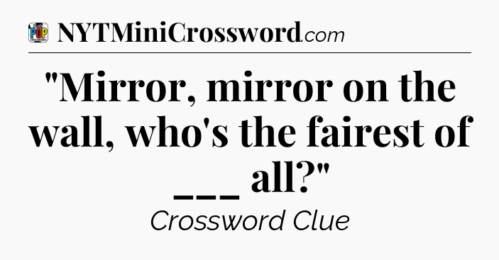 The clue “”Mirror, mirror on the wall, who’s the fairest of ___ all?”” most recently appeared in a Daily Pop Plus Crossword on April 24, 2024.