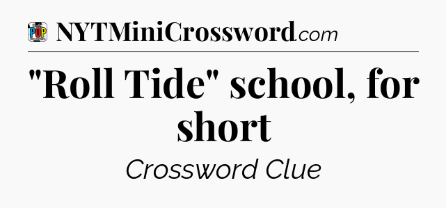 The clue “”Roll Tide” school, for short” most recently appeared in a Daily Pop Plus Crossword on April 27, 2025.
