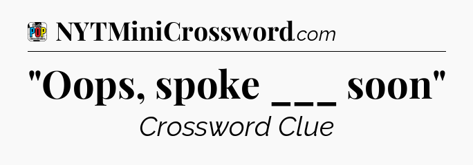 If you landed on this webpage, you definitely need some help with Daily Pop Crossword. This simple page contains the solution for ‘”Oops, spoke ___ soon”‘ crossword clue. Scroll down and see the answer to this hint!