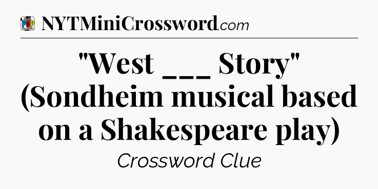 The clue “”West ___ Story” (Sondheim musical based on a Shakespeare play)” most recently appeared in a Daily Pop Plus Crossword on April 30, 2025.