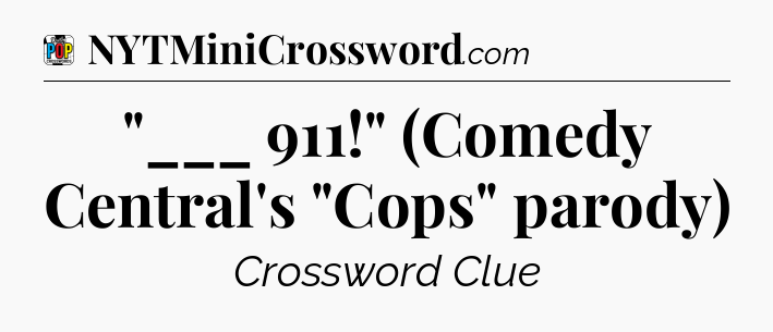 The clue “”___ 911!” (Comedy Central’s “Cops” parody)” most recently appeared in a Daily Pop Plus Crossword on April 9, 2025.