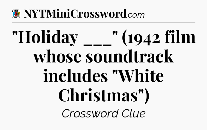 The clue “”Holiday ___” (1942 film whose soundtrack includes “White Christmas”)” most recently appeared in a Daily Pop Plus Crossword on April 9, 2025.