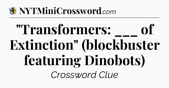 The clue “”Transformers: ___ of Extinction” (blockbuster featuring Dinobots)” most recently appeared in a Daily Pop Plus Crossword on April 9, 2025.
