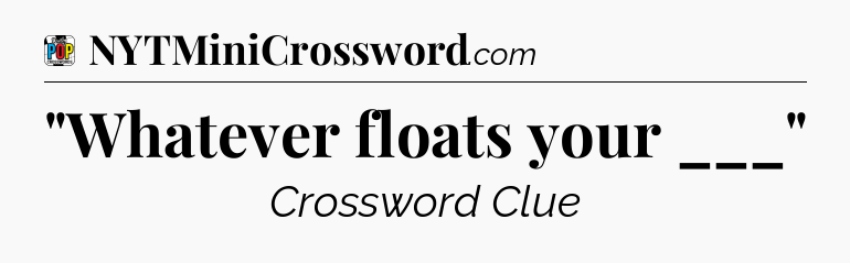 The clue “”Whatever floats your ___”” most recently appeared in a Daily Pop Plus Crossword on May 12, 2025.