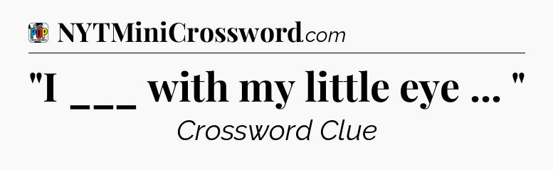 The clue “”I ___ with my little eye … “” most recently appeared in a Daily Pop Plus Crossword on May 14, 2024.