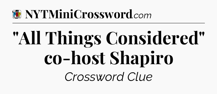 The clue “”All Things Considered” co-host Shapiro” most recently appeared in a Daily Pop Plus Crossword on May 21, 2024.