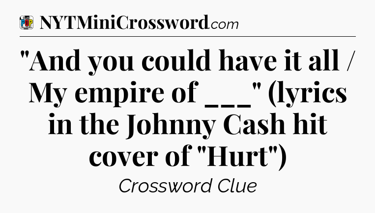 The correct answer to the crossword clue “”And you could have it all / My empire of ___” (lyrics in the Johnny Cash hit cover of “Hurt”)” is DIRT.