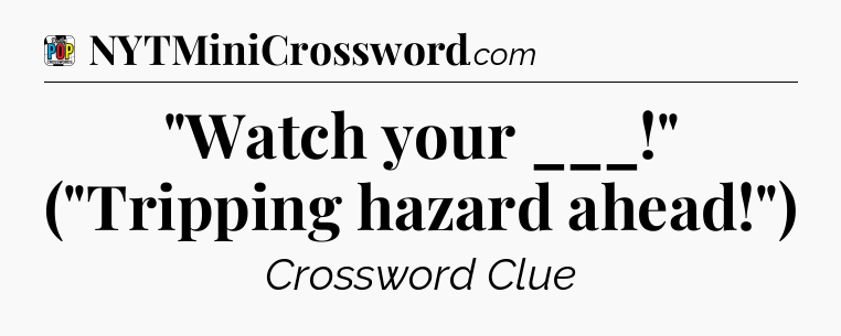 The clue “”Watch your ___!” (“Tripping hazard ahead!”)” most recently appeared in a Daily Pop Plus Crossword on May 21, 2024.