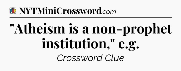 What is the answer to the clue “”Atheism is a non-prophet institution,” e.g”?
